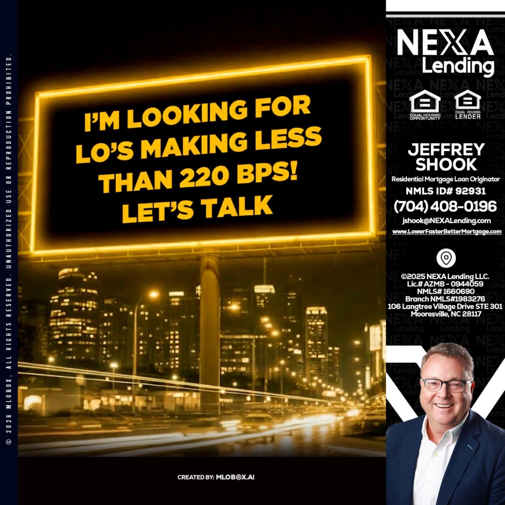 Hi, my name is Jeffrey Shook. I’m a Loan Officer with NEXA Lending LLC., offering personalized mortgage solutions, fast customized quotes, great rates and service with integrity.