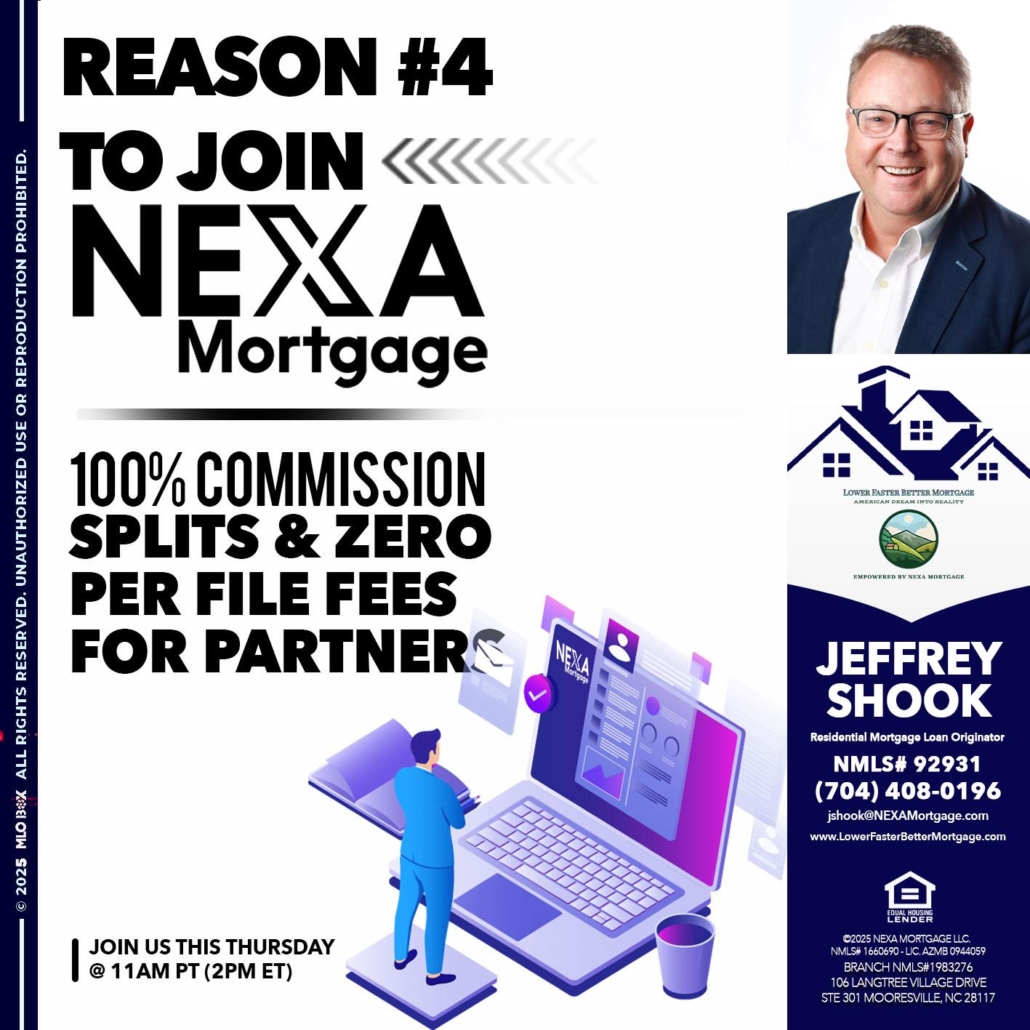 REASON 4 - Jeffrey Shook -Residential Mortgage Loan OriginatorHi, my name is Jeffrey Shook. I’m a Loan Officer with NEXA Mortgage LLC., offering personalized mortgage solutions, fast customized quotes, great rates and service with integrity.