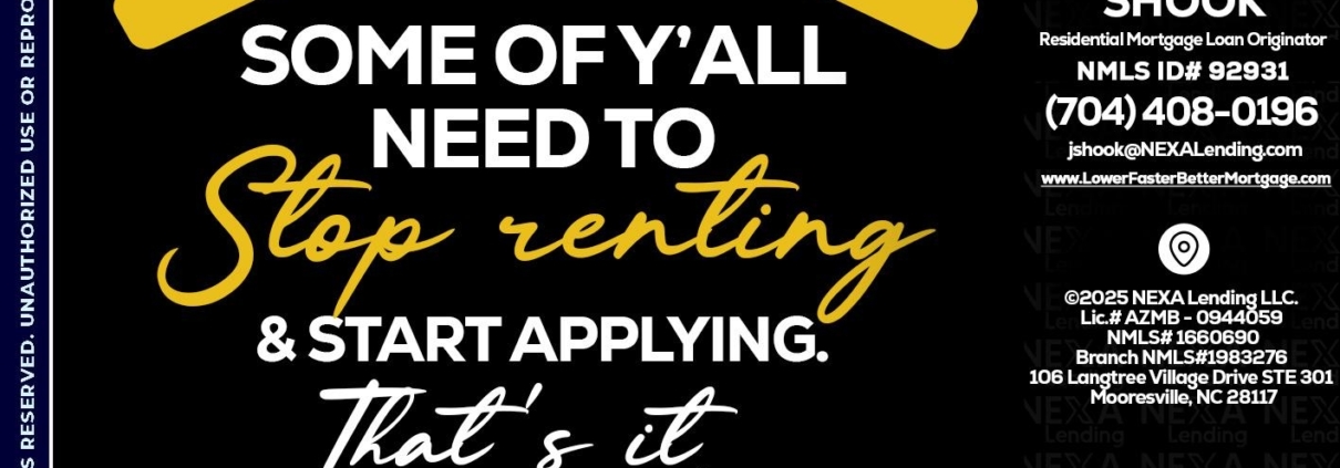 SOME OF Y'ALL- Jeffrey Shook -Residential Mortgage Loan OriginatorHi, my name is Jeffrey Shook. I’m a Loan Officer with NEXA Mortgage LLC., offering personalized mortgage solutions, fast customized quotes, great rates and service with integrity.